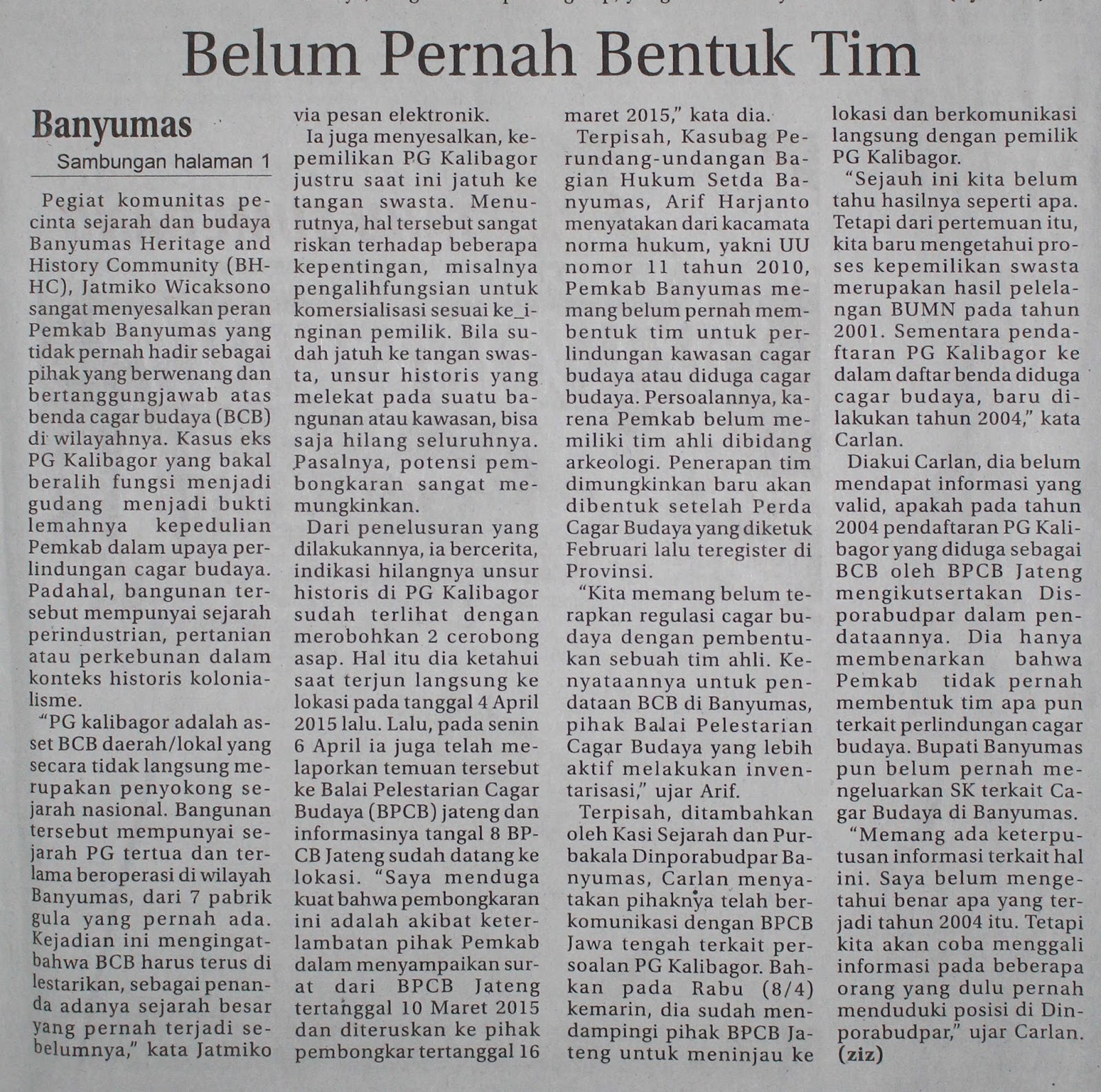Gubernur Jawa Tengah pada 28 Agustus 1929 telah menerima petisi, Semarang tanggal 26 Agustus 1929, dari A. Fernhout dan Mr. H. A. A. C. Reyners, agen Semarang dari Amsterdam mendirikan perusahaan saham gabungan "Masyarakat Budaya Kepangeranan", saat ini perwakilan perusahaan tanpa nama di KUALITAS yang didelegasikan di Hindia Belanda juga ke Amsterdam berbasis saham gabungan perusahaan gula Kaliredjo, pemilik perusahaan gula "Kaliredjo", yang terletak di Selatan dan Utara tinggal Banyumas, yang berisi permintaan untuk otorisasi untuk memperluas daerah untuk budidaya tebu untuk gula disebut perusahaan dengan 3035 bouws, yang 1.388 bouws terletak di distrik Banyumas off deeling utara Banjoemas bouws dan 1647 di distrik Kroya departemen Selatan Banyumas.